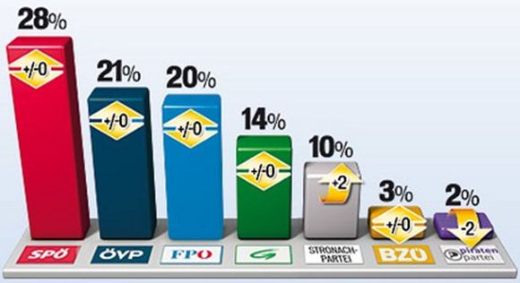 Úspěšný podnikatel Frank Stronach míří vzhůru, aktuálně by jeho stranu volilo 10 % Rakušanů. A co více, podle průzkumu Gallupova institutu je potenciál jejich volebního zisku až trojnásobný. Za volitelnou považuje Stronachovu stranu totiž až třetina Rakouských voličů. Samotného Stronacha si zatím v křesle kancléře dokáže přestavit 12 % a dalších 13 % by kvitovalo jeho parťáka Sigiho Wolfa.