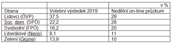 Z průzkumu vyplývá, že po několika aférách spojených s mladým, dynamickým kancléřem a předsedou Lidové strany Sebastianem Kurzem, se pozice této strany otřásají. Ve volbách do rakouské Spolkové rady – tedy dolní komory parlamentu – v září 2019 získali Lidovci (ÖVP) famózní volební výsledek. Obdrželi 37,5% hlasů. Po volbách vytvořili Lidovci koalici se Zelenými (Grüne), kteří získali rovněž vynikajících 13,9% hlasů. U Zelených je třeba dodat, že v předcházejícím volebním období nebyli ve Spolkové radě vůbec zastoupeni.