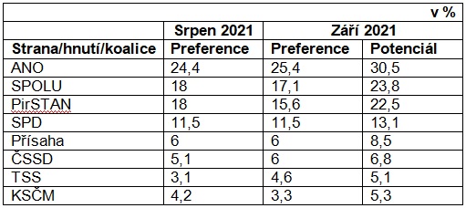 Phoenix research: Volební preference politických stran – srpen, září 2021