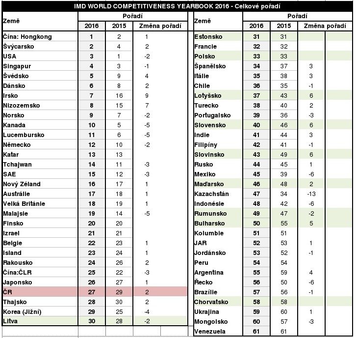 V zásadě nám tedy letošní žebříčky říkají, že bylo hůř. Zlepšení přineslo až uvolnění škrtící smyčky „úsporných“ opatření. Dále, že naše konkurenceschopnost je postavena hlavně na cenách, což z nás dělá jedny z nejúspěšnějších žebráků na světě. A konečně – žebříčky nejsou všechno, obsahují i ideologické nálepky, kterých se nemusíme držet.