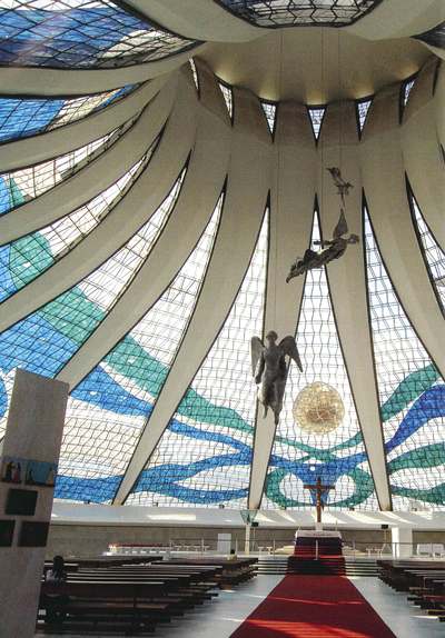 Interiér Niemeyerovy katedrály, do které se prý vejde až 10 tisíc lidí.