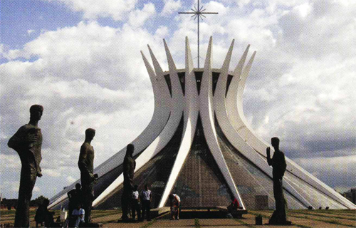 Římskokatolická katedrála v Brasilii, za kterou dostal Niemeyer Pritzkerovu cenu. Tu odborníci na architekturu považují za obdobu Nobelovy ceny pro architekty a stavitele.